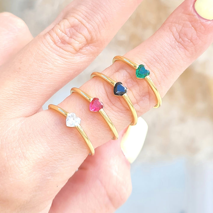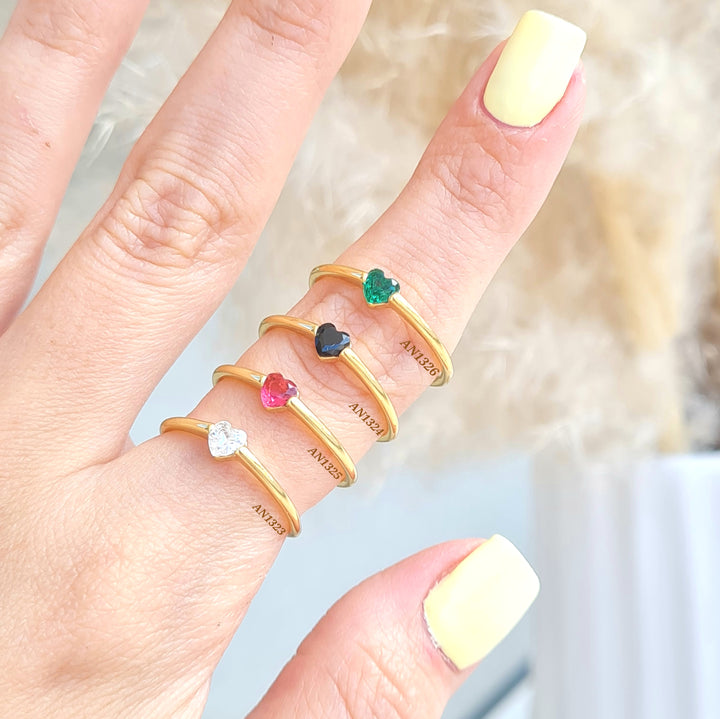 Anillos en rodio con formas de corazón en zircones