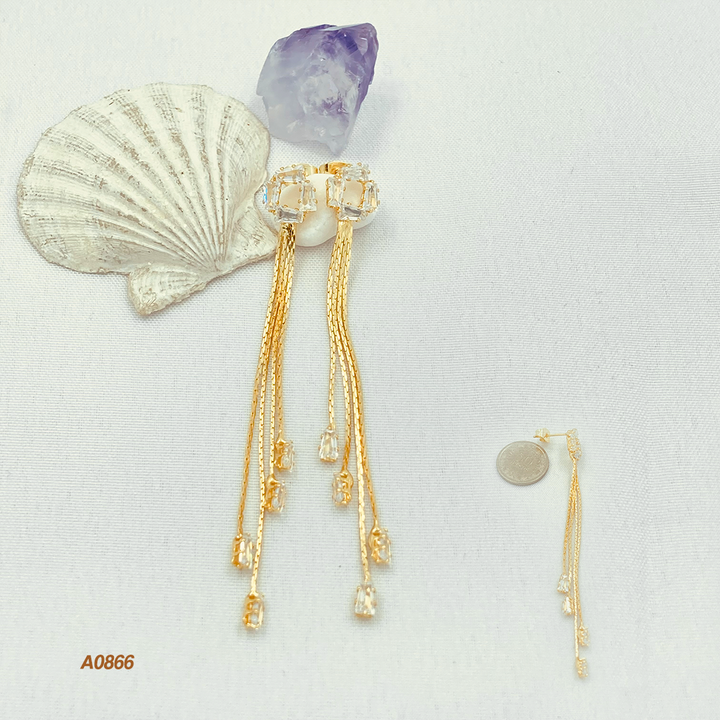 Arete en rodio con forma de cuadrado y cadenas con detalles en zircones