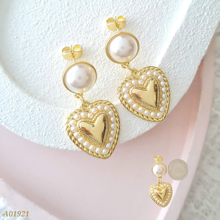Arete doble perla y corazón A01921