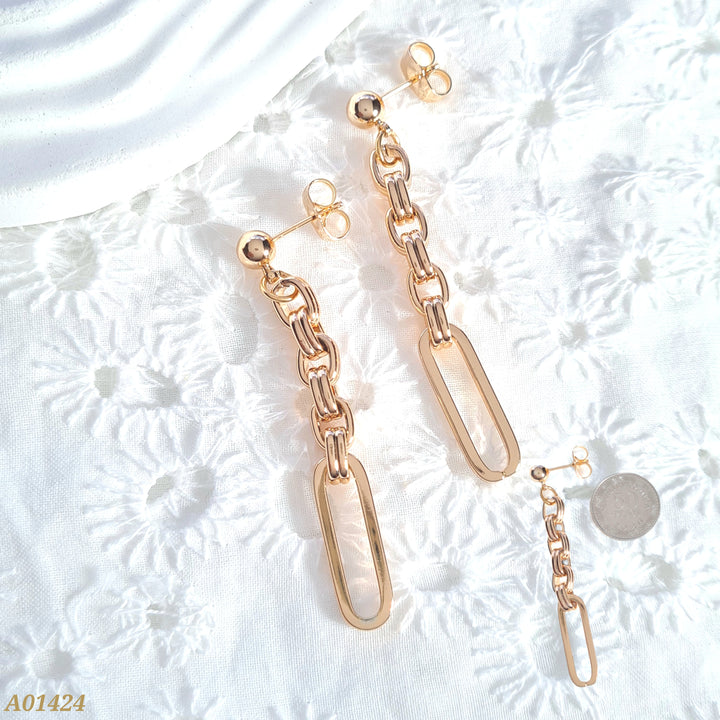 Arete en rodio con cadenas tejido eslabón largo