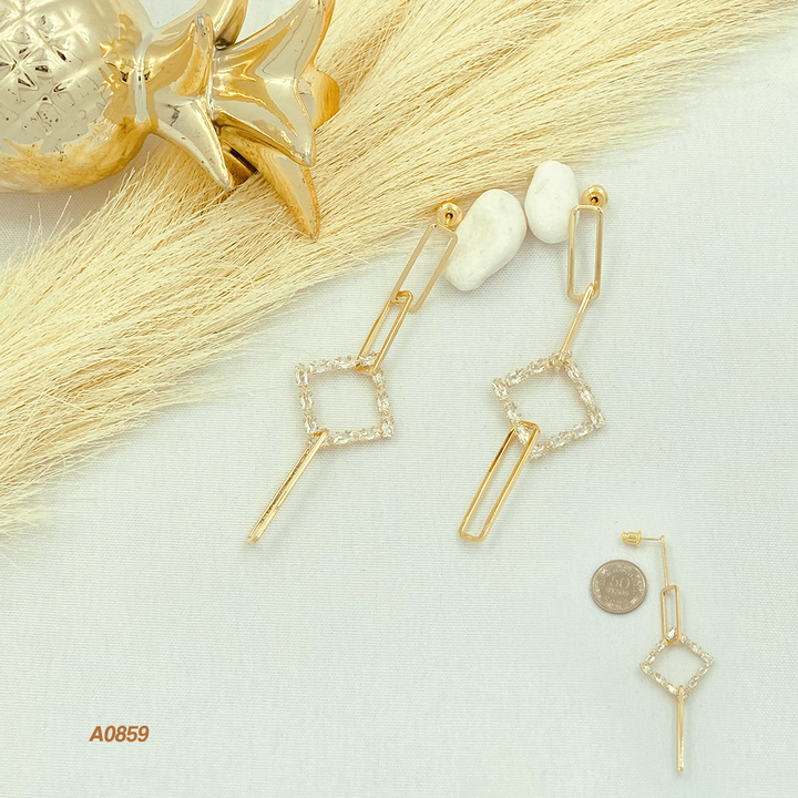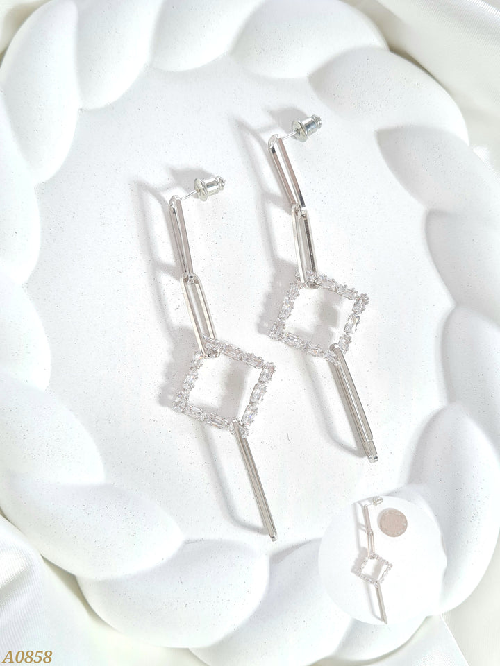 Arete en rodio con forma de eslabón alargado y rombo en zircones