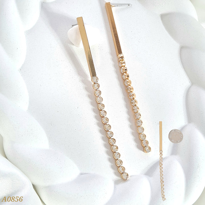 Arete en rodio con forma de rectangular y cadena con detalles en zircones redondos