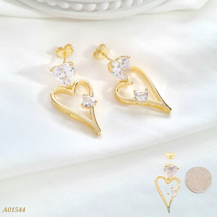 Arete rodio doble silueta corazón cristales A01544