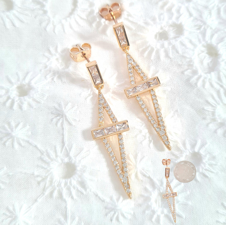 Arete en rodio con forma de rombo alargado y detalles en zircones