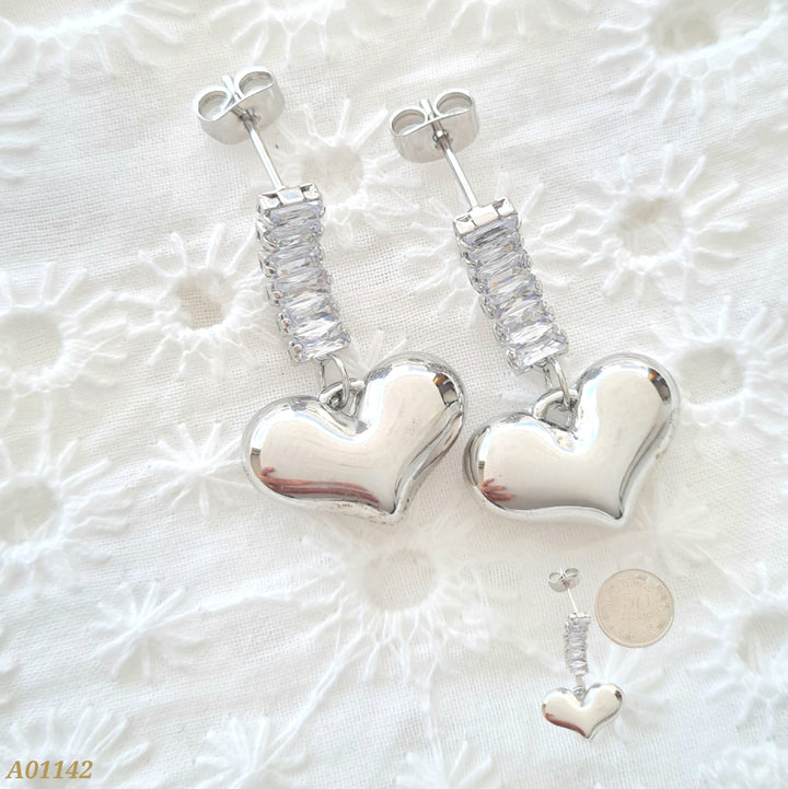 Aretes con zircones y corazón A01142