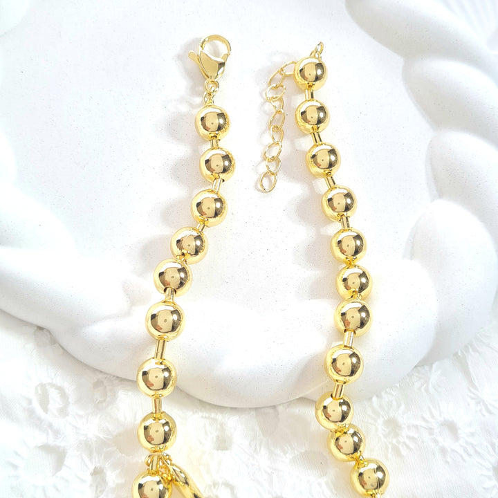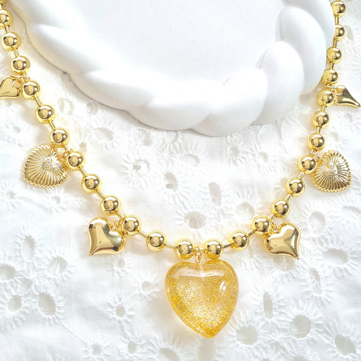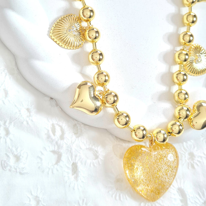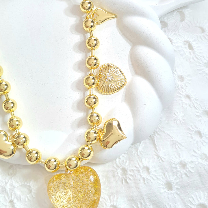 Cadena en rodio con textura balines ovalados y dije en forma de corazón inflado