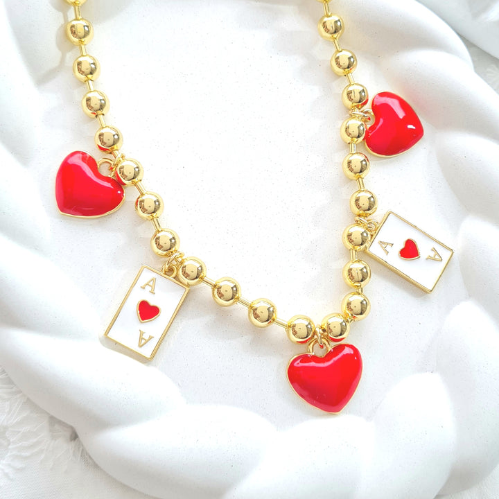 Cadena balines corazón y carta C01773