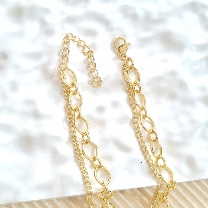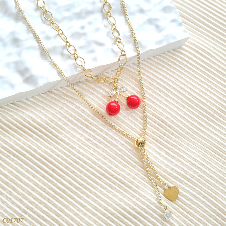 Cadena en rodio doble con eslabones y dije con forma de cereza