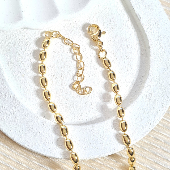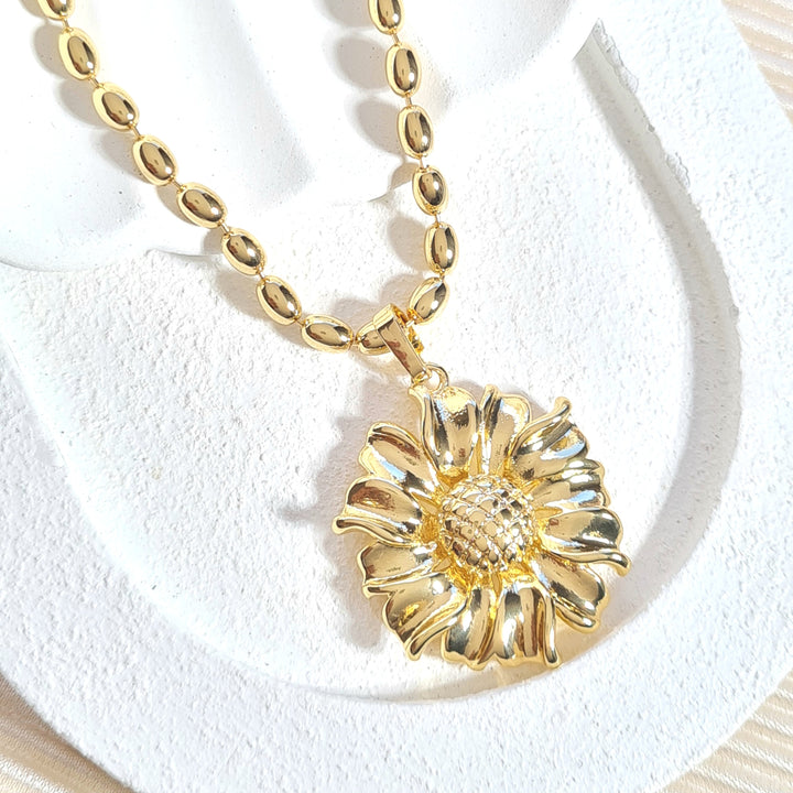 Cadena en rodio con textura de balines alargados y dije en forma de flor