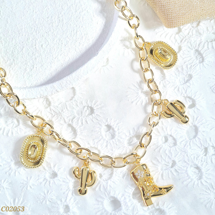 Cadena eslabones con dijes sombrero/cactus/bota C02053