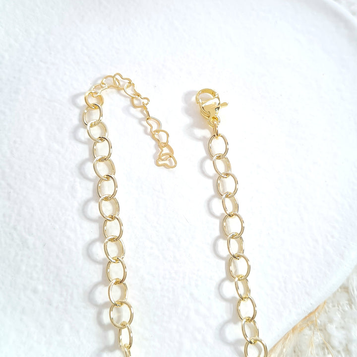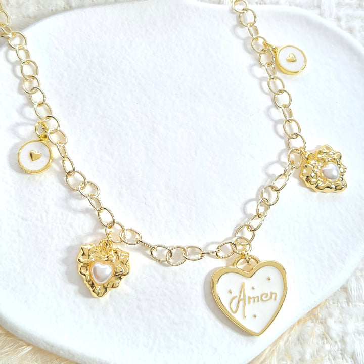 Cadena rodio eslabones dijes en forma de corazones color blanco