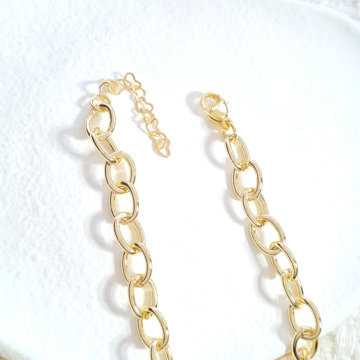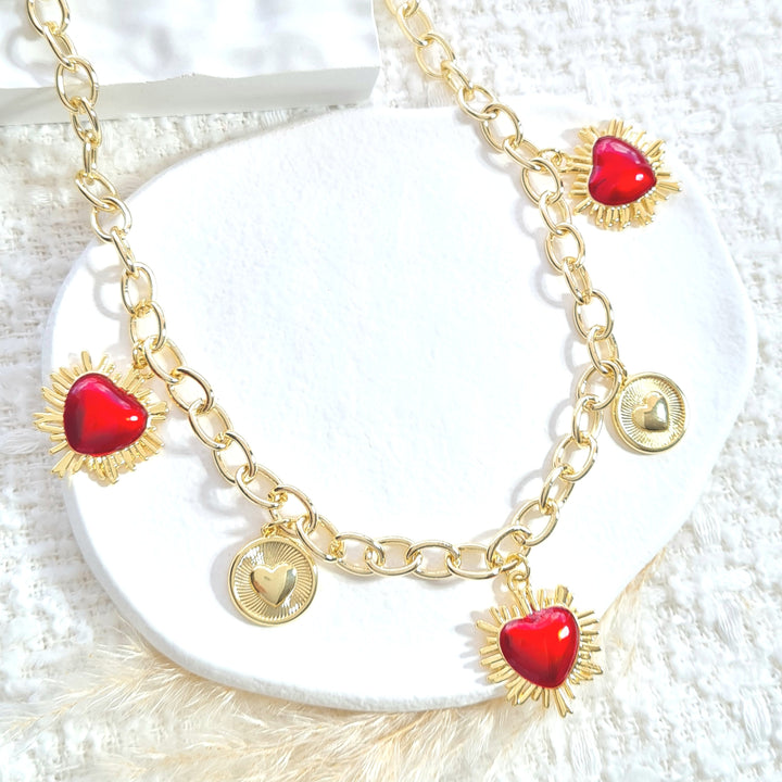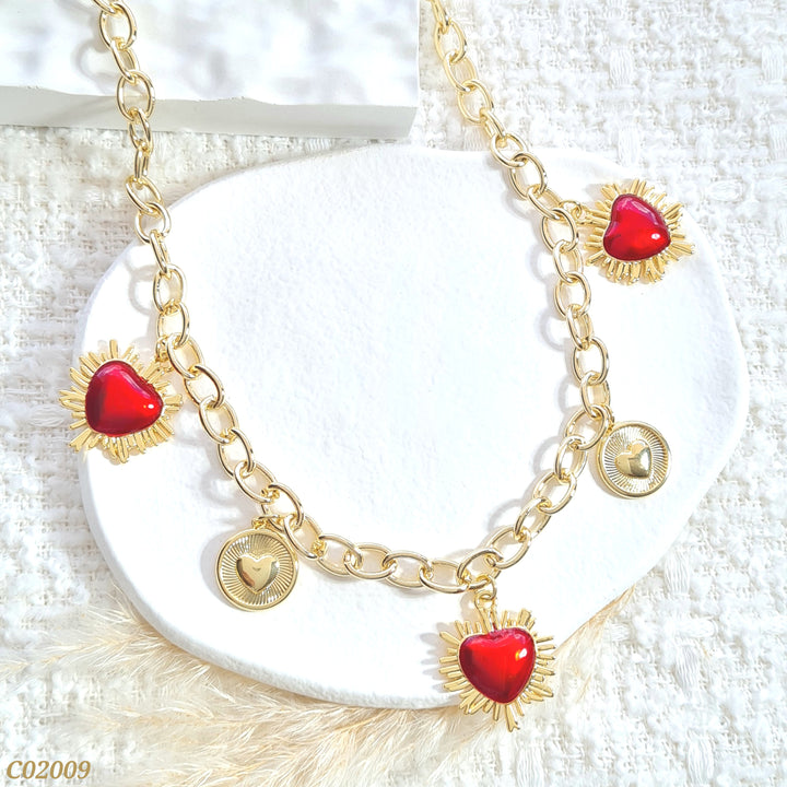 Cadena en rodio con tejido eslabones y dijes en forma de sagrado corazón