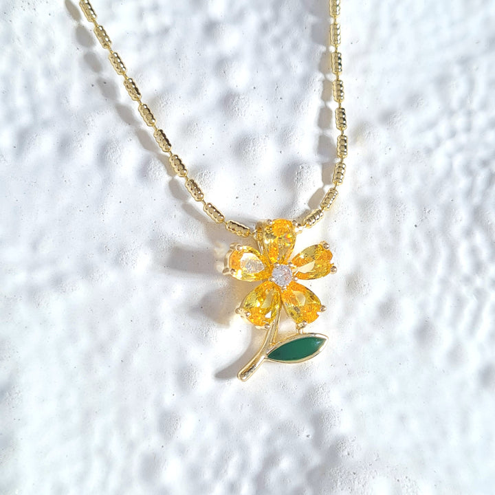 Cadena en rodio ajustable dije de flor en zircones amarillos