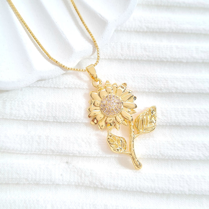 Cadena en rodio ajustable dije de flor girasol y detalles en zircones