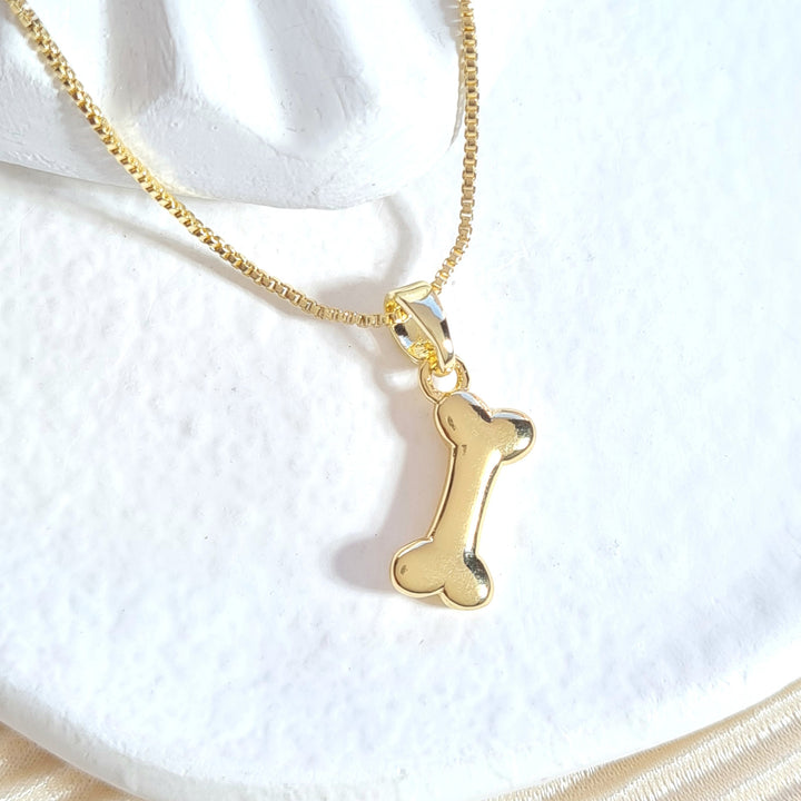 Cadena en rodio, sistema ajustable, dije en forma de hueso