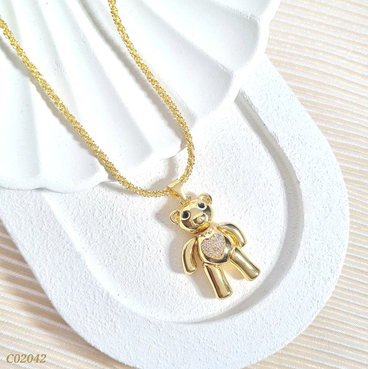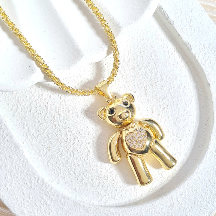 Cadena rodio con textura y dije en forma de oso articulable con detalles en zircones