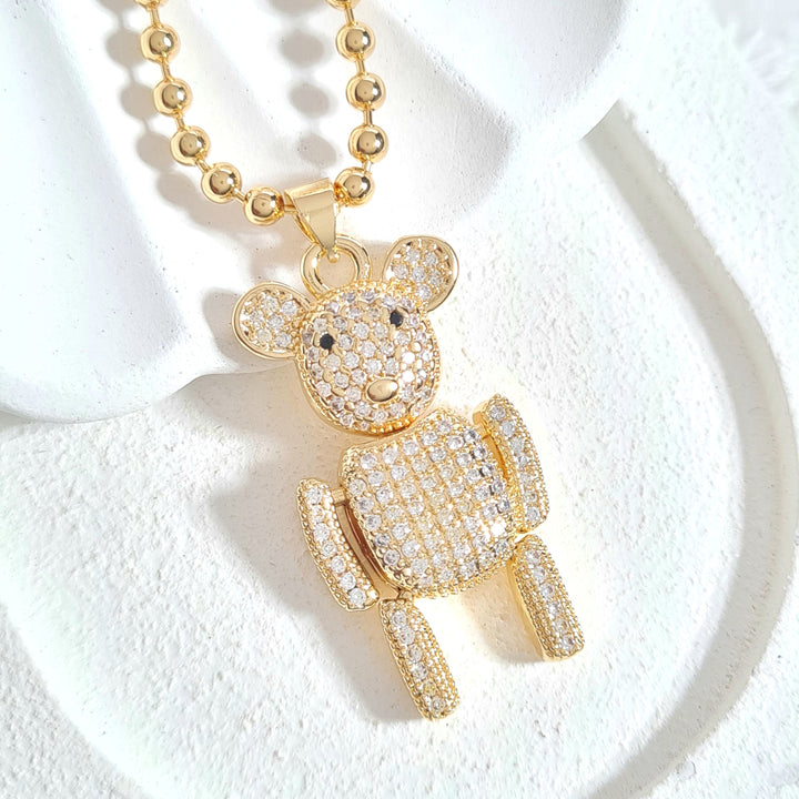 Cadena rodio con textura balines y dije en forma de oso articulable con detalles en zircones