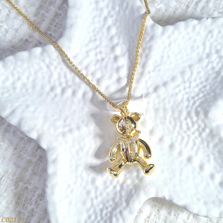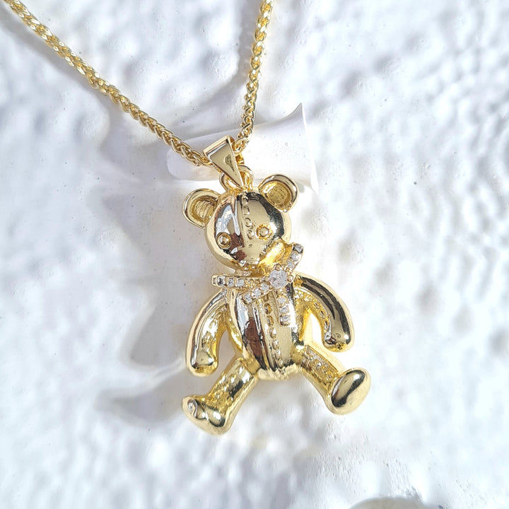 Cadena rodio con textura y dije en forma de oso con detalles en zircones