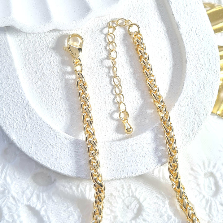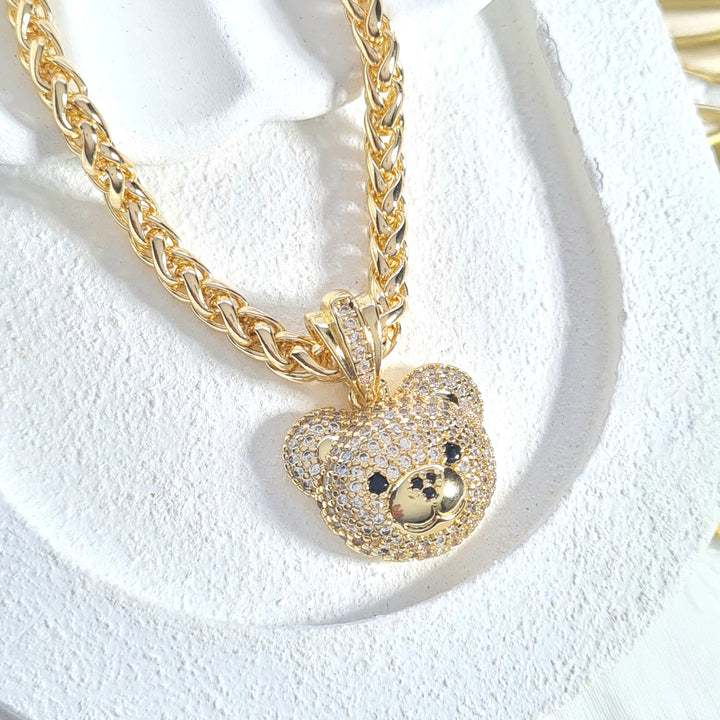 Cadena en rodio con textura y dije en forma de oso con detalles en zircones