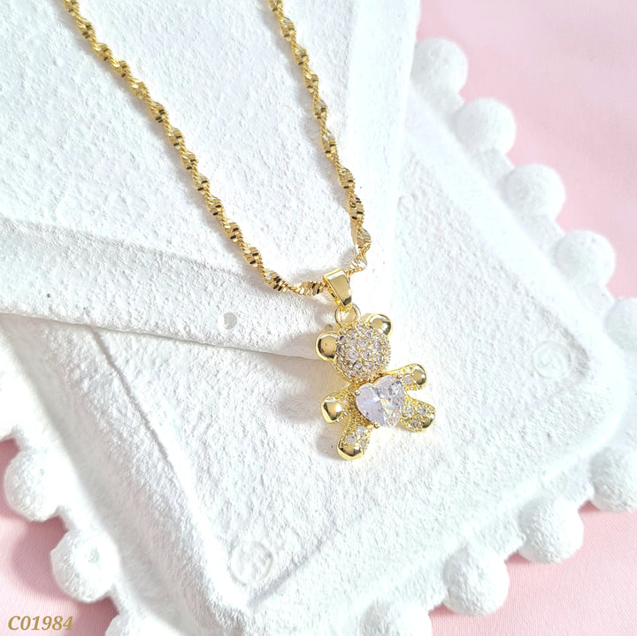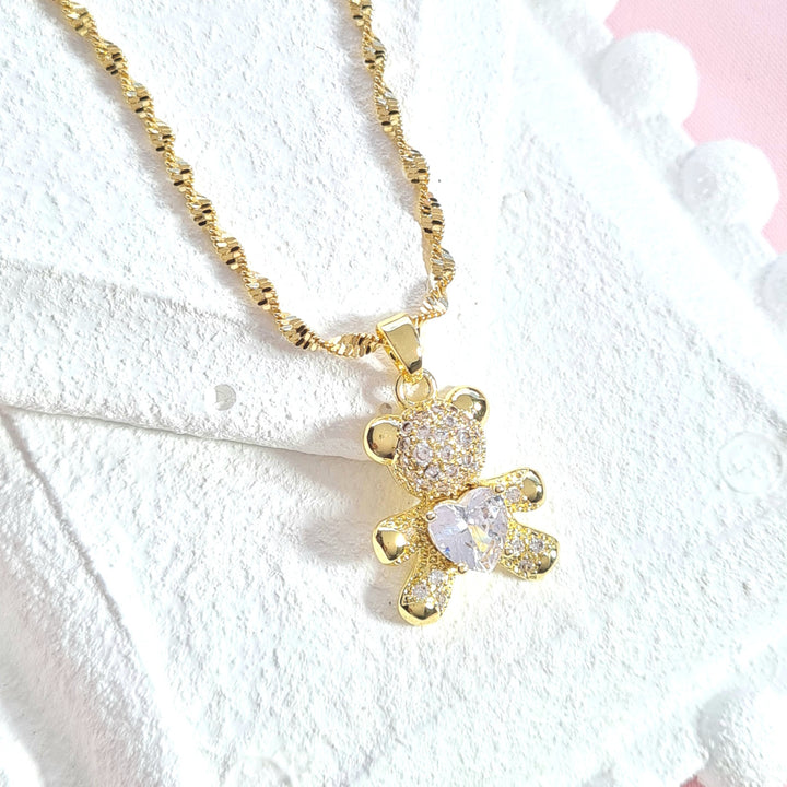 Cadena rodio con textura y dije en forma de oso con detalles en zircones