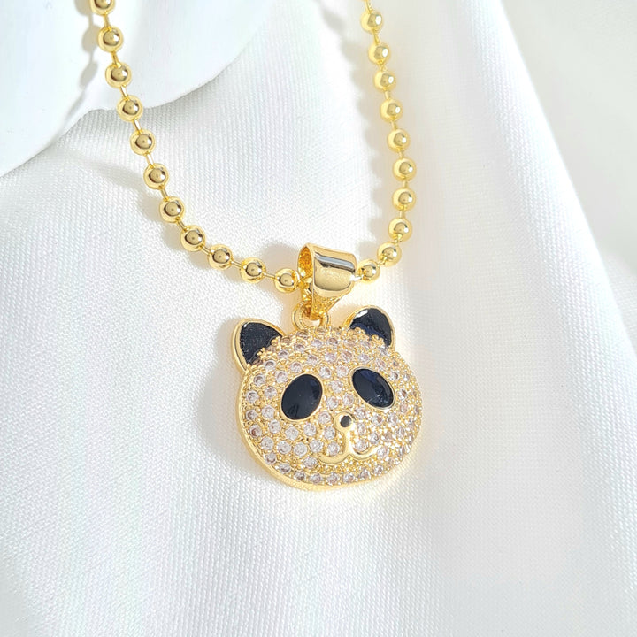 Cadena rodio con textura y dije en forma de oso panda con detalles en zircones