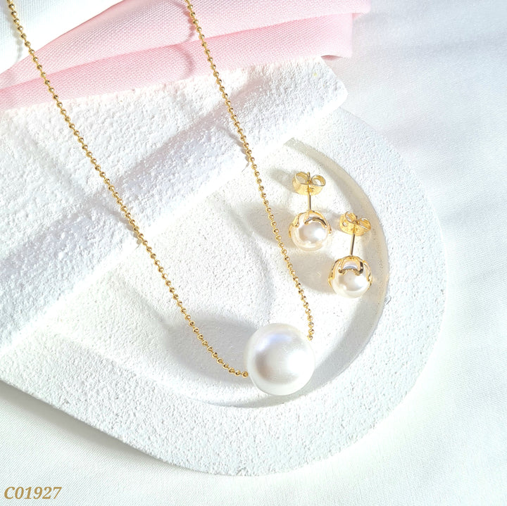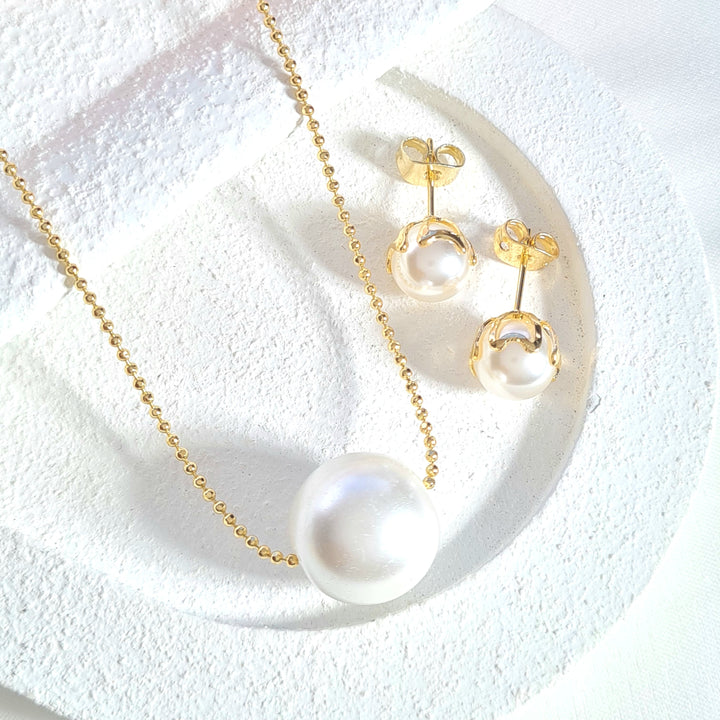 Cadena en rodio ajustable, con dije de perla y topos perla