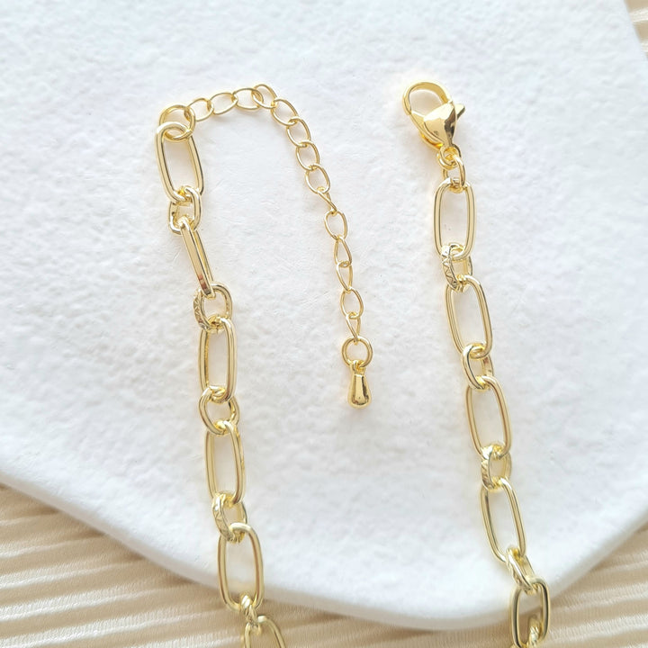 Cadena rodio textura cubana, dijes en forma de piñas, corazones y fresa