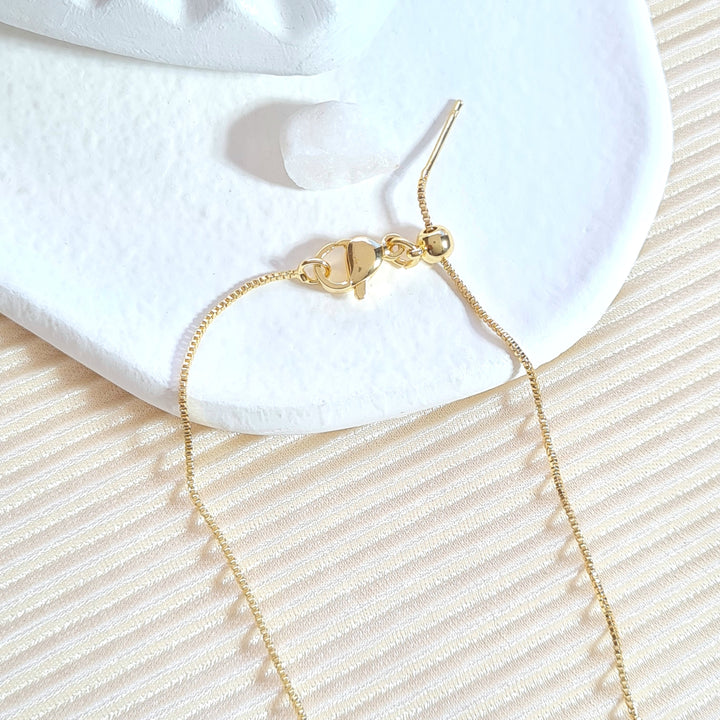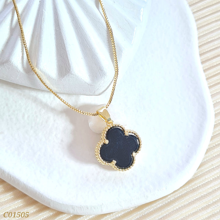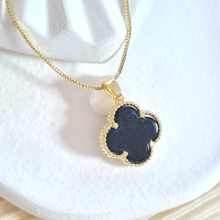 Cadena en rodio, sistema ajustable y dije en forma de trébol negro