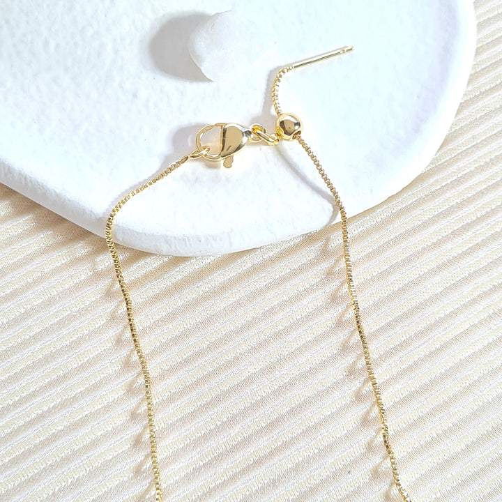 Cadena en rodio, sistema ajustable y dije en forma de trébol rosa