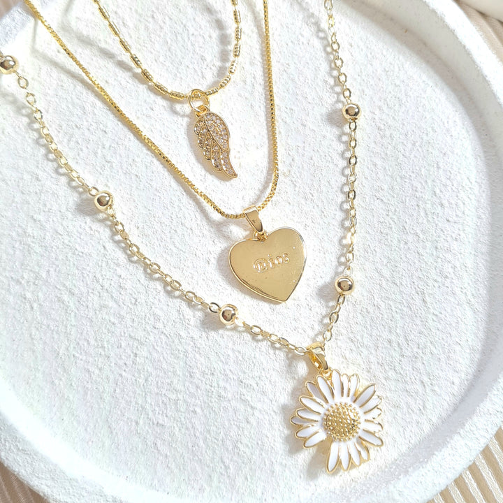 Cadena triple ala, corazón y flor C02235