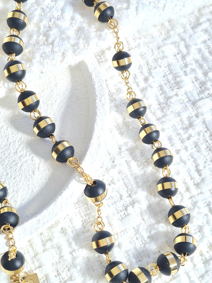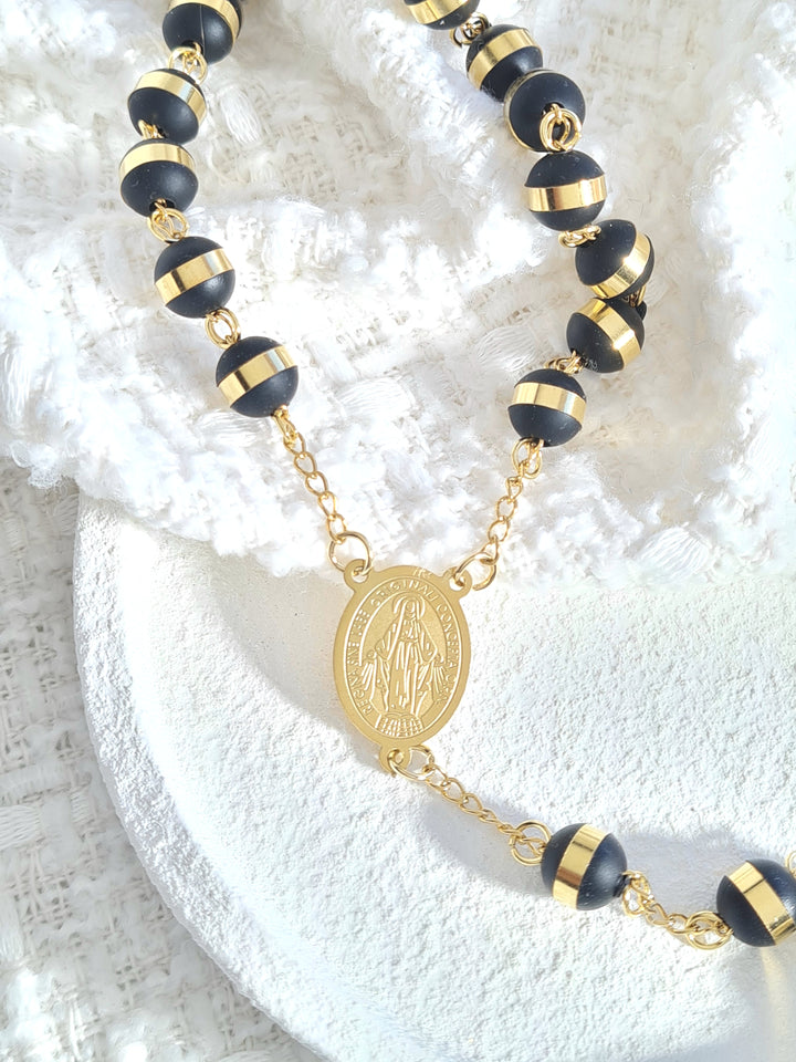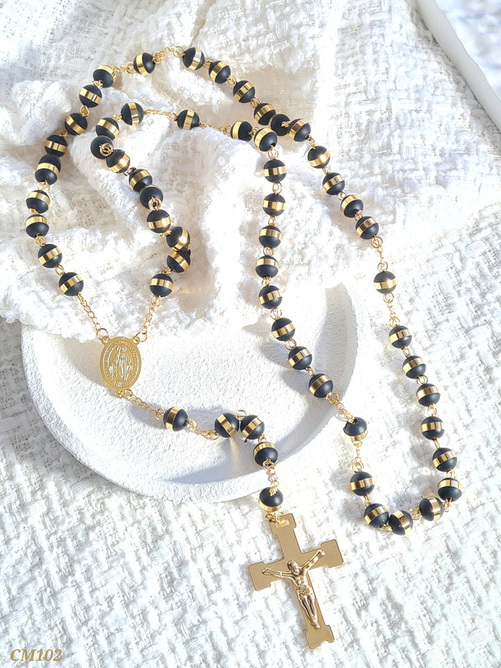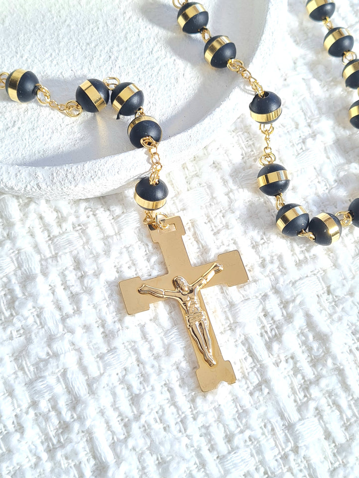 Camándula masculina en neopreno negro arandelas doradas CM102