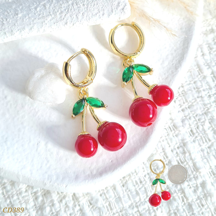 Candonga en rodio con dije en forma de cereza y detalles en zircones