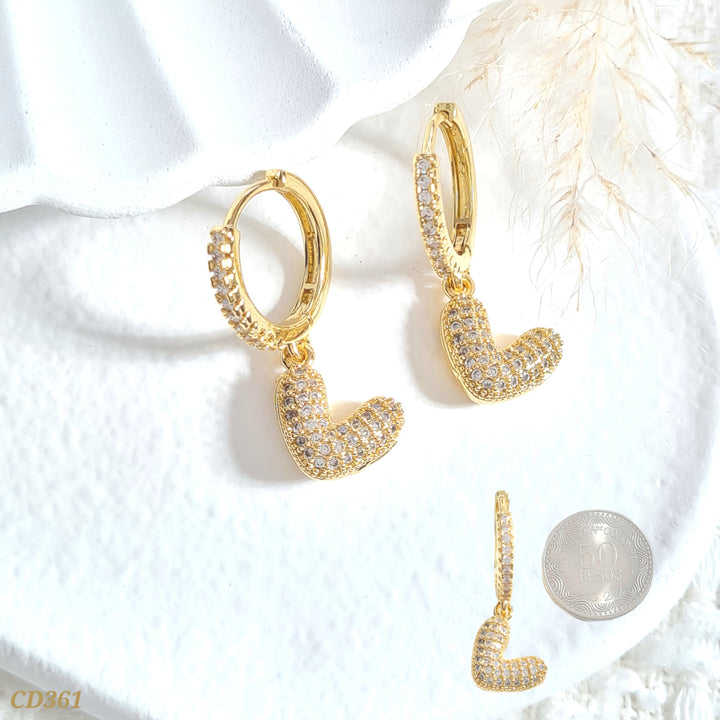 Candonga en rodio con dije en forma de corazón y detalles en zircones
