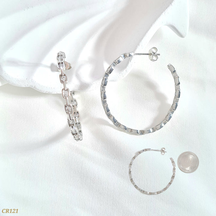 Candonga plateada en rodio con tejido de eslabón y detalles en zircones