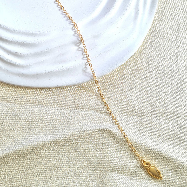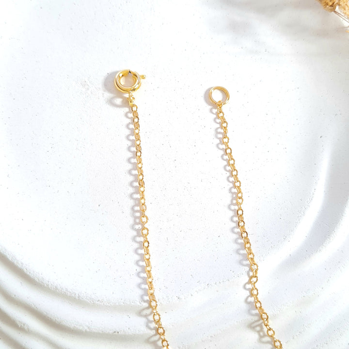 Collar triple en rodio con cadena con perlas, cadena central y detalle de dije en el extremo