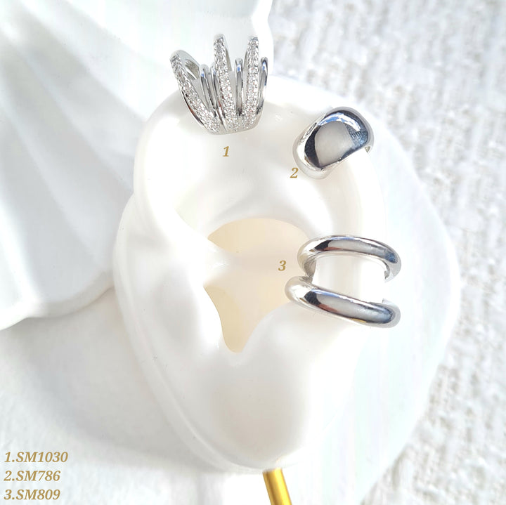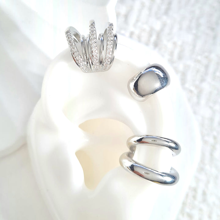 Earcuffs plateados en rodio con detalles en zircones