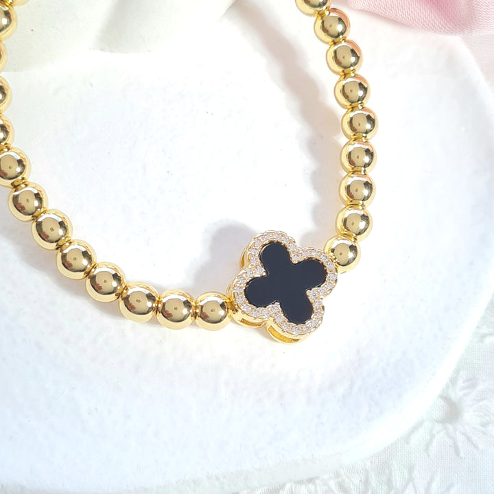 Pulsera balines y trébol negro PR945