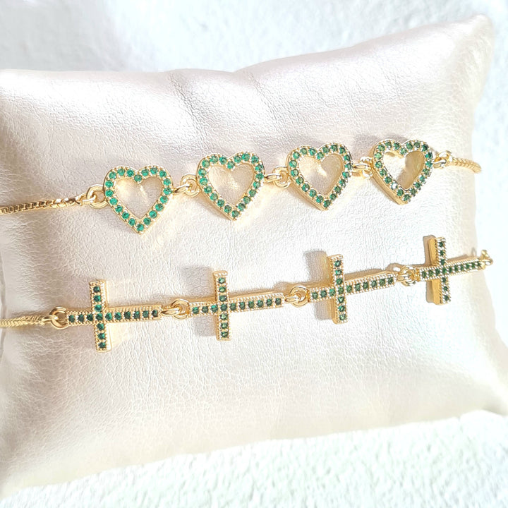 Pulsera corazones verdes/ Pulsera cruces verdes (cada una)
