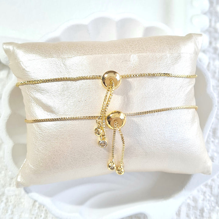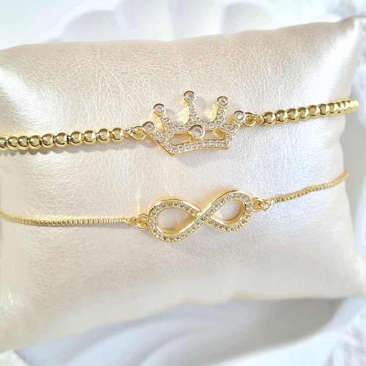 Pulsera en rodio con sistema ajustable, dije en forma de corona y detalles en zircones