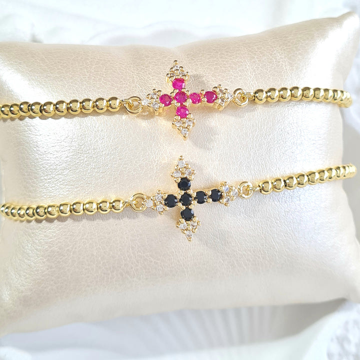 Pulsera cruz fucsia / pulsera cruz negra