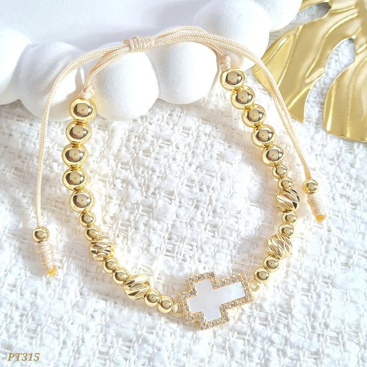 Pulsera cruz nácar PT315