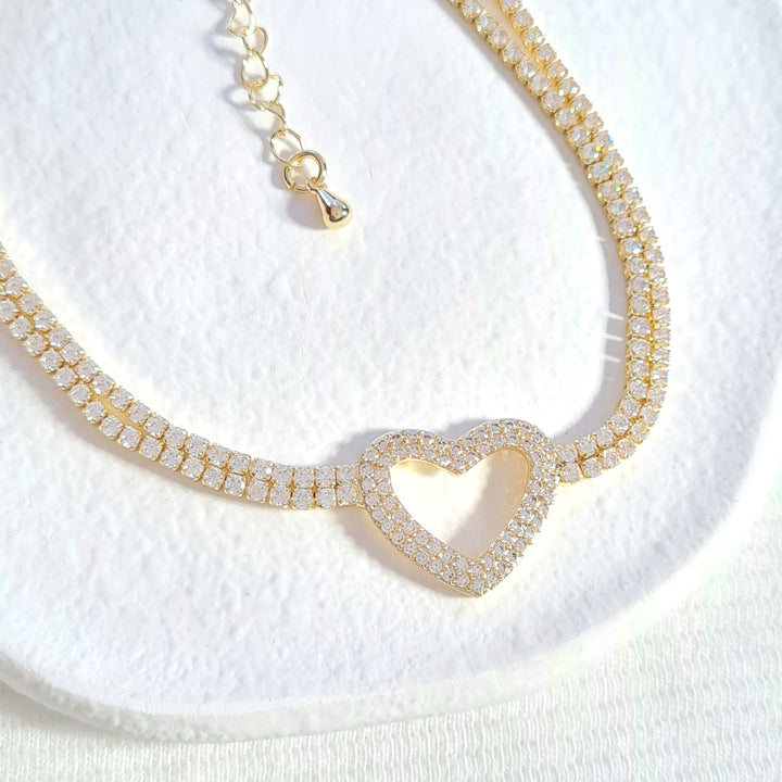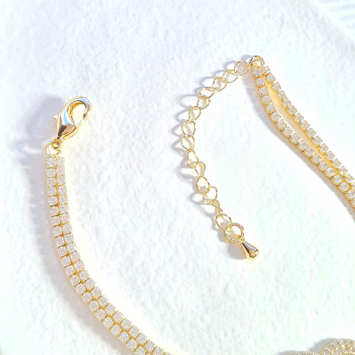 Pulsera rodio doble con zircones y dije en forma de corazón