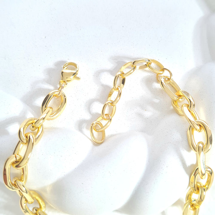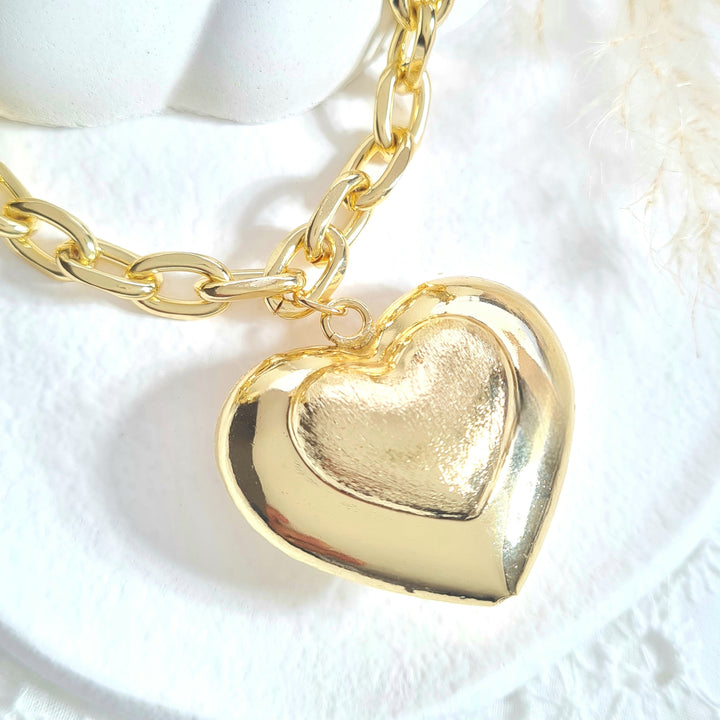 Pulsera en rodio tejido de eslabones, con dije en forma de corazón y detalles en textura