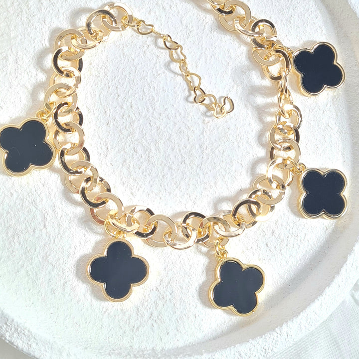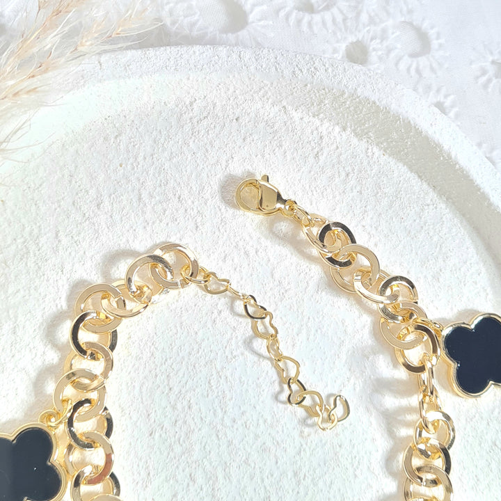 Pulsera eslabones trébol negro PR1451