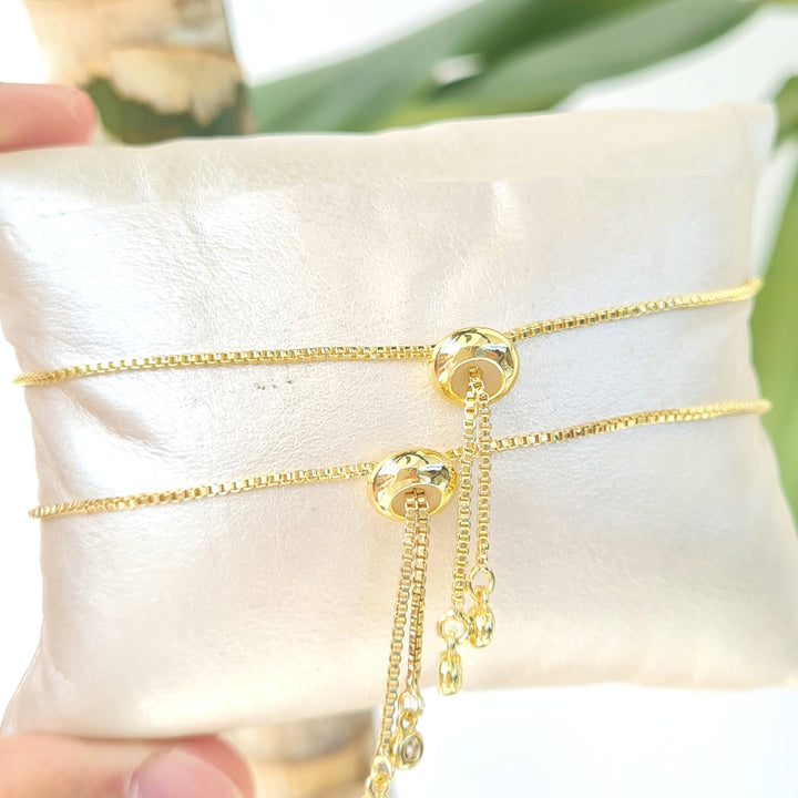 Pulsera en rodio con sistema ajustable y dije en forma de sagrado corazón