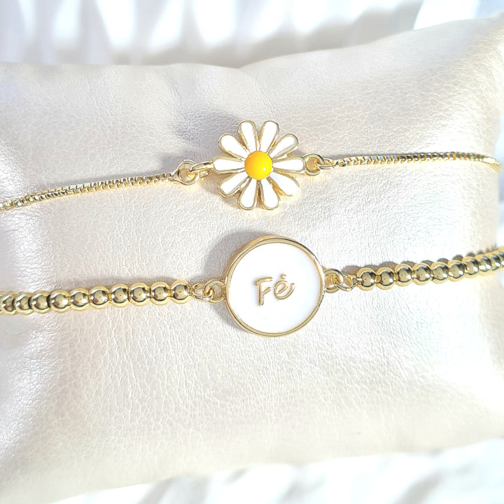 Pulsera en rodio con sistema ajustable, dije en forma de "Fé"