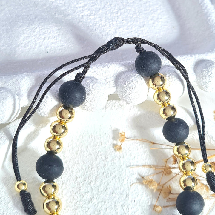 Pulsera base en hilo, sistema ajustable, neopreno, balin y placa en forma redonda con imagen de cristo