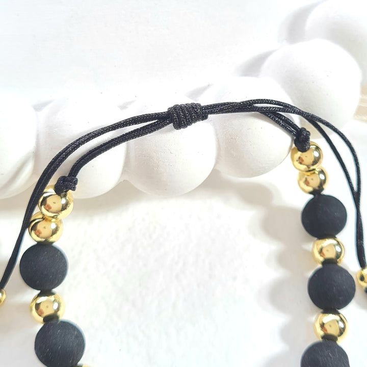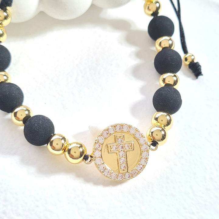 Pulsera base en hilo, sistema ajustable, neopreno, balin y dije de cruz