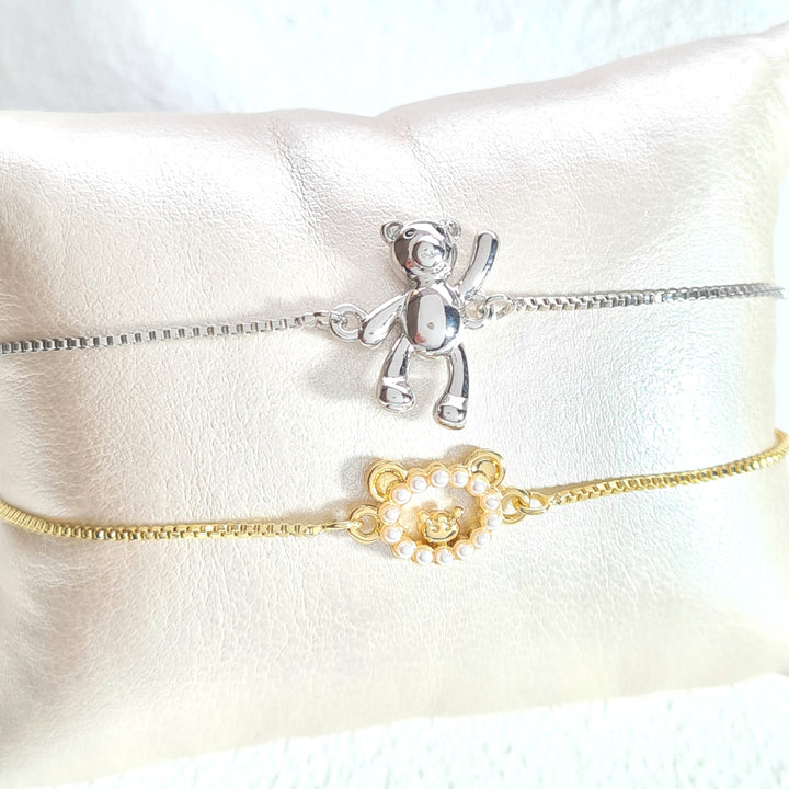 Pulsera oso plateado/ Pulsera oso perlas (cada una)