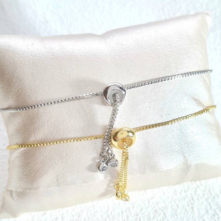 Pulsera en rodio con sistema ajustable y dije en forma de oso plateado